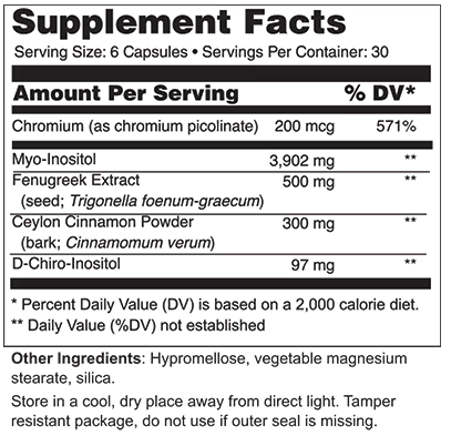 Myo- & D-Chiro Inositol with Chromium, Cinnamon & Fenugreek 180 Vegetarian Capsules