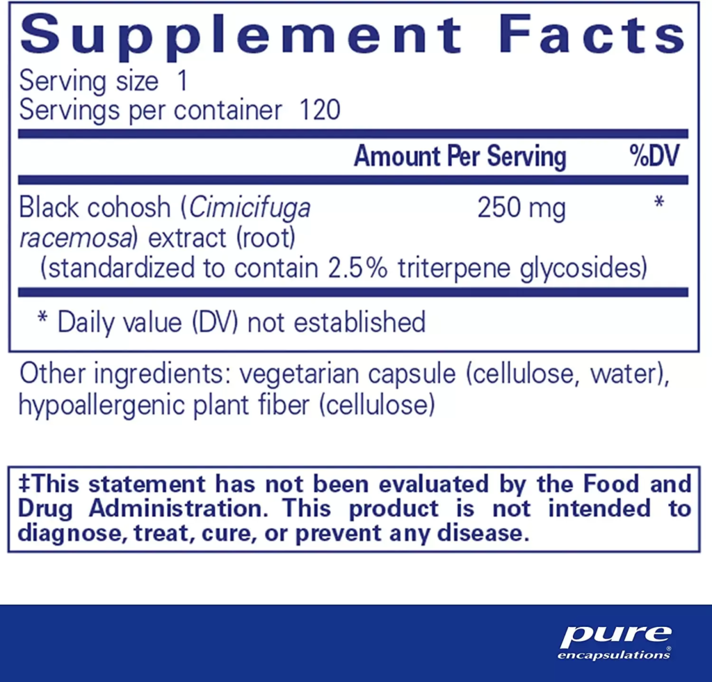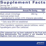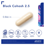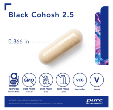 Black cohosh, Cimicifuga racemosa, is well known for promoting comfort during menopause. Black cohosh functions by maintaining healthy levels of luteinizing hormone (LH), allowing for optimal comfort and physical well being. The herb also exhibits mild estrogenic activity by binding to estrogen receptors. Black Cohosh 2.5 is standardized to contain 2.5% triterpene glycosides.