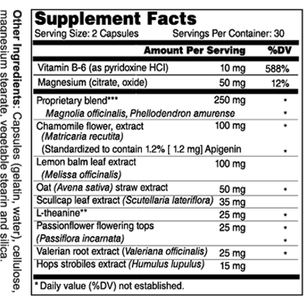 Relaxation Formula is a calming herbal supplement designed to help your body and mind unwind—without making you feel drowsy. It features well-studied ingredients like L-theanine and Relora®, along with calming botanicals such as chamomile, lemon balm, valerian, and passionflower to help manage stress, promote relaxation, and ease tension.
